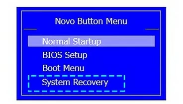 3. The Novo Button Menu will appear on the screen. Use the arrow keys to select System Recovery, then press the Enter key.