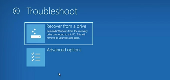 7. Follow the on-screen tutorials, click Troubleshoot > Recover from a drive.