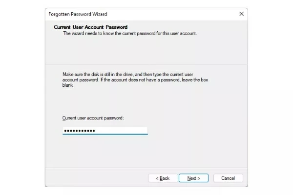 4. The "Forgotten Password Wizard" will appear and click Next to continue.