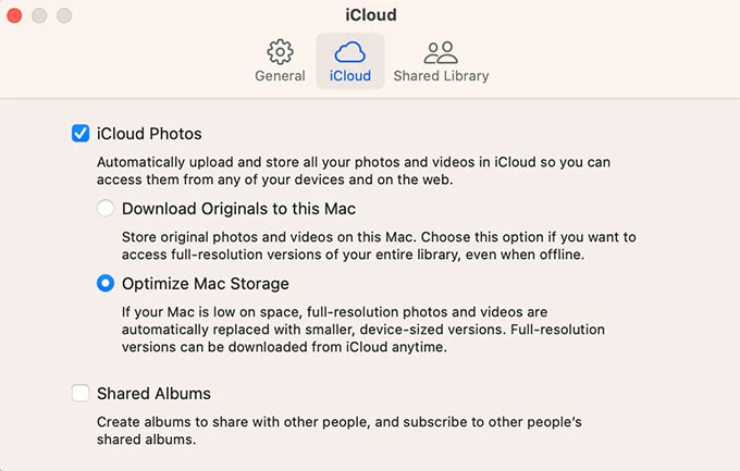 3. Check iCloud Photos or iCloud Photo Library in the pop-up window.