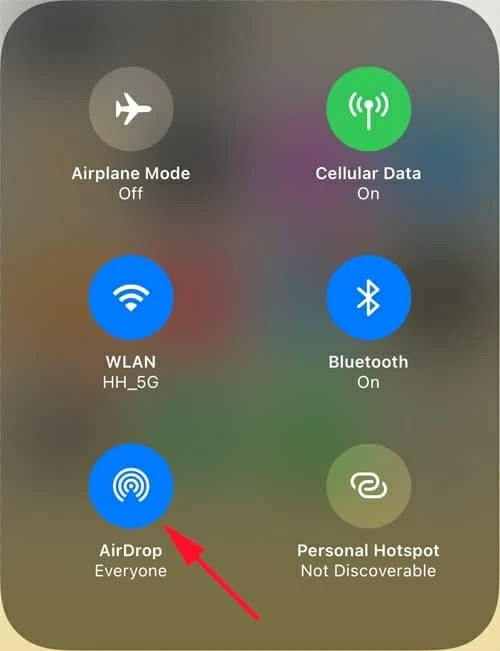 AirDrop may get stuck waiting when Personal Hotspot is enabled on iPhone/iPad. You need to swipe down from the top-right corner to access "Control Center," then long press the first square box to enter the network settings, tap the "Personal Hotspot" button to turn it off.