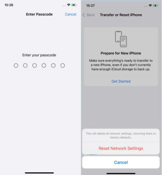 Step 2: Enter your device passcode, a warning message will appear informing you that this will delete all network settings, returning them to factory defaults. Tap on "Reset Network Settings" to confirm.