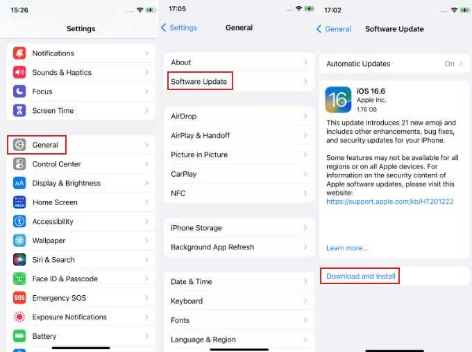 Step 2: If there are any updates available, tap "Download and Install" button and wait for the process to end.