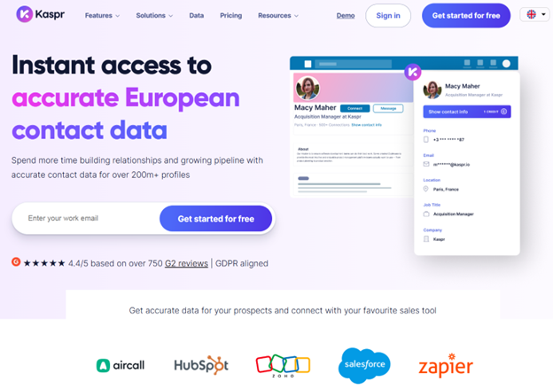 Kaspr is designed for speed and simplicity, allowing users to quickly extract contact information from LinkedIn profiles. It integrates well with CRM systems and is ideal for teams that rely heavily on LinkedIn for prospecting