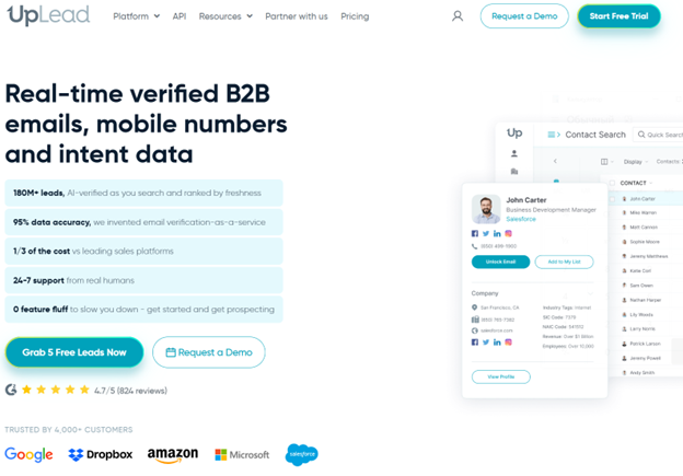 UpLead focuses on delivering high-quality contact data with real-time verification. It allows users to build targeted lists using advanced filters such as industry, role, company size, and location. Its emphasis on data accuracy makes it a strong choice for teams that prioritize deliverability