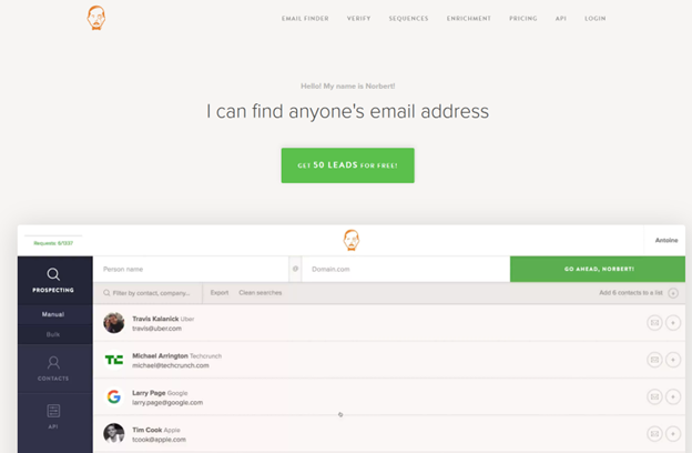 Voila Norbert offers a straightforward way to find email addresses using a person's name and company domain. It's easy to use and provides verification insights, making it suitable for quick prospecting tasks without complexity.