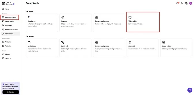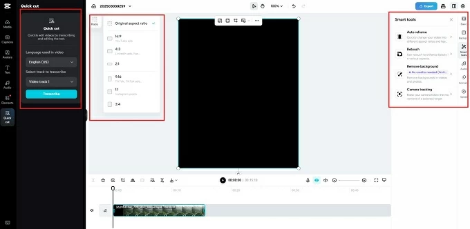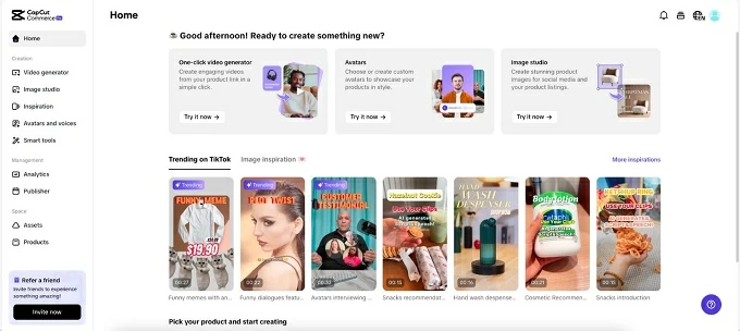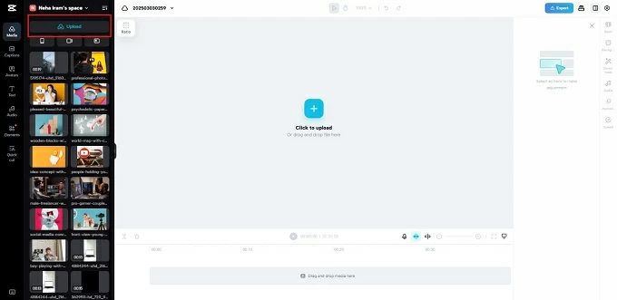Start by uploading your video to CapCut Commerce Pro's video editor. If you have a 4K or Full HD video, ensure you're working with the highest resolution file to avoid unnecessary quality loss. Avoid converting or compressing the video before splitting.