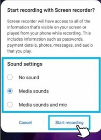 Step 3: There will be a pop-up window asking you to select the sound settings, choose Media sounds and tap Start recording.