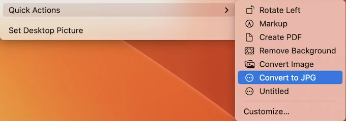 5. Now it's time to check if you can convert from HEIC to JPG on your Mac! Open the Finder app and right-click on the HEIC picture, search for Quick Actions and select Convert to JPG. There will be a JPG copy in the gallery.