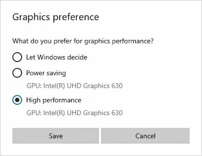 3. From the pop-up menu, select High performance to set OBS compatible to Windows GPU.