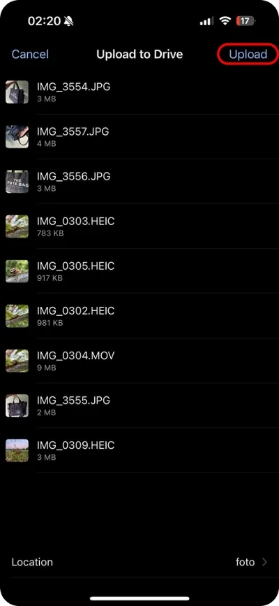 5. After backup, open the Photos app and delete the uploaded files from your iPhone.