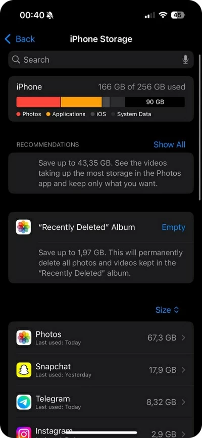 Unused apps often waste valuable space with hidden cache and stored data. Remove those apps to get more GB on iPhone without iCloud.