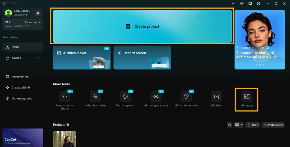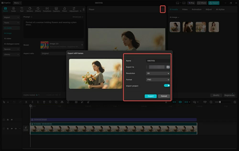 CapCut PC Video Editor gives a user-friendly way to create such filler shots through its AI features. With it, you can create stock-style images that can be used as extra visuals in your edit.