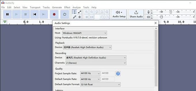 Then open Audacity, click "Audio Setup" > "Host" and select "Windows WASAPI" to record system sound. Then select your output device in Recording Device section and click the Record icon to start recording.