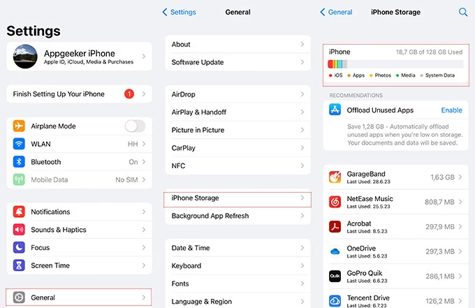 1. Access Settings on your iPhone and tap General > iPhone Storage.