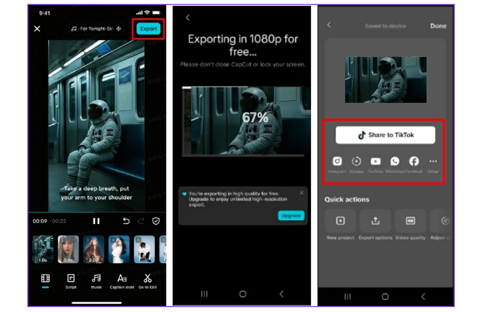 After reviewing the output, tap "Export" on the top-right. The video will be saved to your device, ready for sharing with audiences worldwide via any platform.