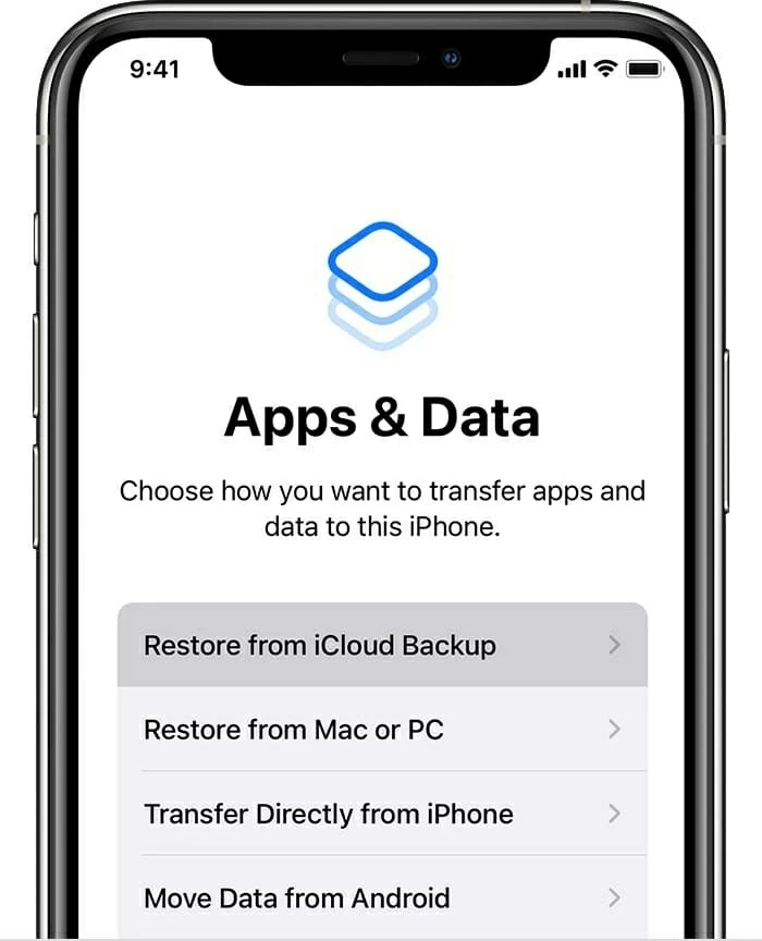 4. Wait until your iPhone restores to factory settings and reboots. Now you get a Hello screen and begin a setup trip. If you have your data backed up before, during the App & Data screen, select to restore your most recent iCloud backup.