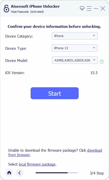 Step 3. Select the information of iPhone 16 and click Start to download the firmware package.