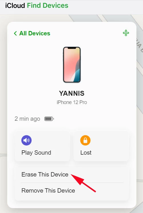 4. Click on the All Devices dropdown at the top, and select your disabled iPhone 16 from the list of devices associated with your Apple ID.