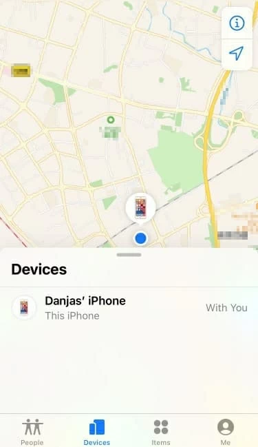 3. Tap Devices tab at the bottom and select your iPhone 8.