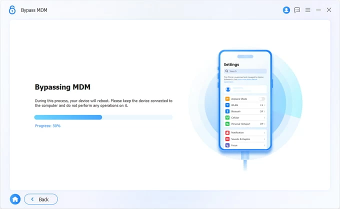 Select "Bypass MDM" from the interface to bypass MDM on an iPad.