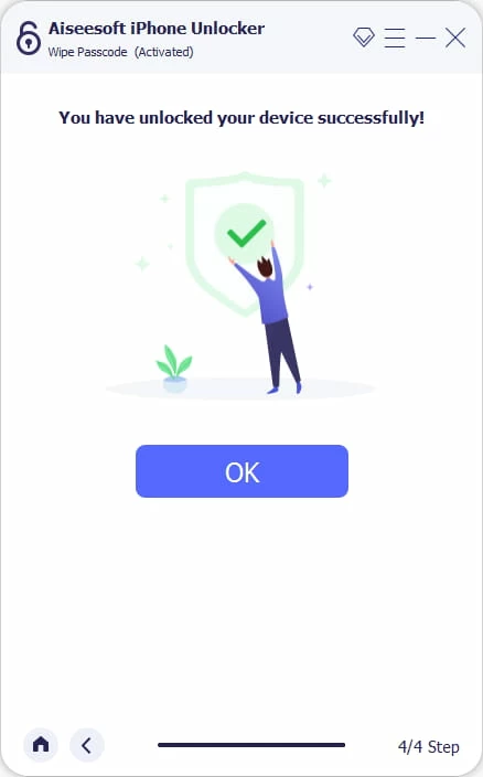 Wait for the app to complete the process erasing and resetting your iPhone. As soon as you see "You have unlocked your device successfully!" disconnect your device from the computer.
